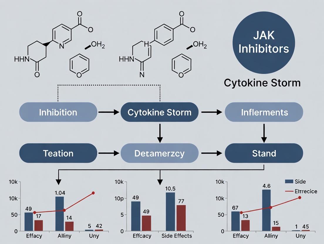 This review provides a comprehensive analysis of Janus kinase (JAK) inhibitors as a targeted therapeutic strategy for cytokine storm syndrome (CSS). We explore the foundational science of JAK-STAT signaling in hyperinflammation, detail methodological approaches for drug selection and clinical application, address key challenges in safety and patient stratification, and critically evaluate comparative clinical efficacy data against other immunomodulators. Designed for researchers and drug development professionals, this article synthesizes current evidence, identifies optimization strategies, and outlines future translational research directions for improving outcomes in CSS-driven conditions like severe COVID-19, CRS, and MAS.